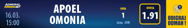 Sa tri boda više od Arisa iz Limasola i čak osam od najvećeg rivala Omonije, APOEL ja na dobrom putu da osvoji prvu titulu posle pet godina. Trijumf protiv najvećeg rivala svakako bi im dao dodatan podstrek i snagu pred ključne borbe.