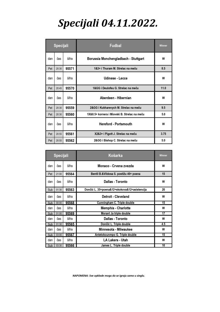 O košarkaškim specijalima u posebnoj vesti, a OVDE možete da pogledate kompletnu ponudu.