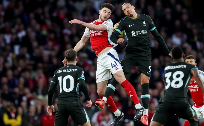 Poveo je Arsenal golom oporavljenog Bukaja Sake, izjednačio kapiten Liverpula Virdžil van Dajk posle kornera, a vođstvo domaćinu vratio Mikel Merino posle savršenog centaršuta Deklana Rajsa tri minuta pre kraja prvog dela, kada su i milimetri bili na strani domaćina.