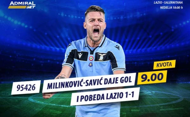AdmiralBet nudi specijal OVDE, pobeda Rimljana iz 1-1 i gol Sergeja Milinković-Savića znače kvotu 9. Ovo prvo je prilično izvesno, "L'Akvile" su ponovimo favorit dana u Italiji, a što se tiče Sergeja on je nedavno dao gol protiv Šturma, a igraće ofanzivnije jer je Ćiro Imobile povređen.