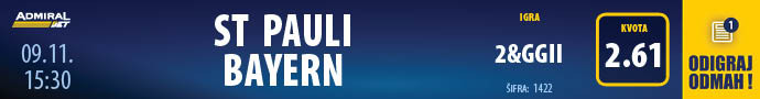 Biće to još jedan „klasni rat“ sa početkom od 15:30 gde najtrofejniji nemački klub ulazi kao favorit uprkos tome što se Sent Pauli ni u jednom od prethodne četiri utakmice kod kuće nije obrukao.