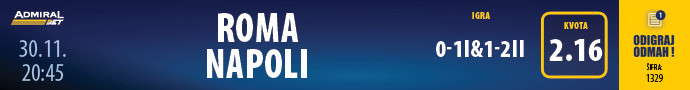 Sledi veliki ispit, "Derbi Sunca". Meč koji diže temperaturu na jugu, Napoli je prvak, podigli su glavu posle pauze pobedom protiv Atalante na "Maradoni". Dobili su i protiv Karabaga u LŠ gde Konteu tradicionalno slabije ide, dok je Roma dočekala vodeći Mitjitland u LE. Ali, Gasperini je (znaćete rezultat utakmice od četvrka) najavio da će izvesti kombinovani tim.