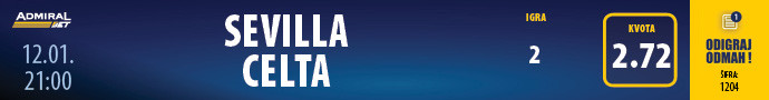 Sevilja je inače u sredini, ali tabela laže, tek četiri boda imaju više od Valensije koja je u zoni ispadanja. Izgubili su prvi meč u 2026. i to kod kuće od davljenika Levantea što pokazuje koliko problema imaju. Za vikend Španci igraju krnje kolo jer se u Saudi Arabiji igra Superkup. Andalužani igraju opet kod kuće, rival je Selta koja igra odlično, u prvih devet kola nisu pobedili, a sada su se već dočepali top sedam. Ovakva Sevilja teško da može da savlada Galicijce, mada su prošle sezone, prvi put u četiri godine tukli "Kelte" kod kuće.