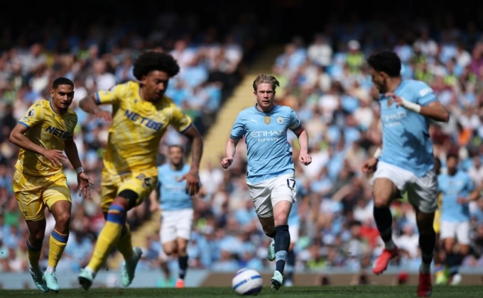 Fudbaleri Mančester sitija pobedili su na krilima Kevina De Brujnea ekipu Kristal Palasa rezultatom 5:2.