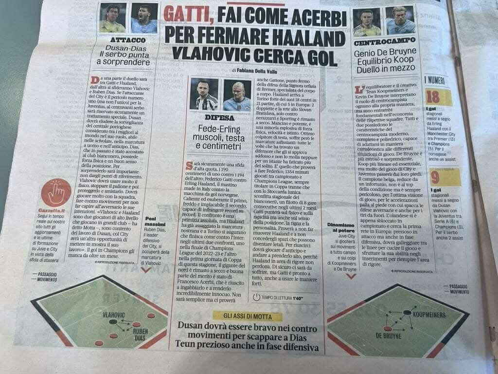 Najveću pažnju zauzima susret Juventusa i Mančester sitija i česta tema medija je Dušan Vlahović od kojeg se očekuje da istupi. Pritom, dosta ga porede sa Erlingom Halandom koji mu je generacija.
