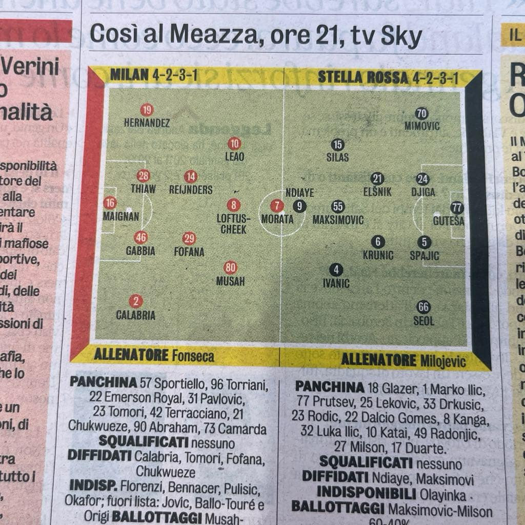“Tuttosport” je pisao o šansama koje bukmejkeri daju Milanu i Zvezdi i šta se očekuje od meča kroz brojke, naravno, tu je i Vlahović… Ista priča.
