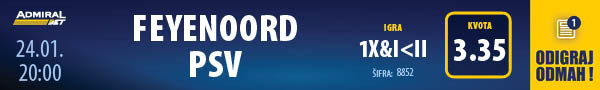 Ali, zato bi borba u Kupu Holandije mogla da bude mnogo zanimljivija u nastavku sezone. Tačnije, već od srede, kada će se u Roterdamu odigrati, slobodno možemo reći - finale pre finala, iako je u pitanju tek meč osmine finala ovog takmičenja. Voljom žreba odlučeno je da se već sada sastanu dve najbolje ekipe u tekućoj sezoni - Fejenord će na svom ''De Kajpu'' dočekati još uvek nepobedivi PSV.