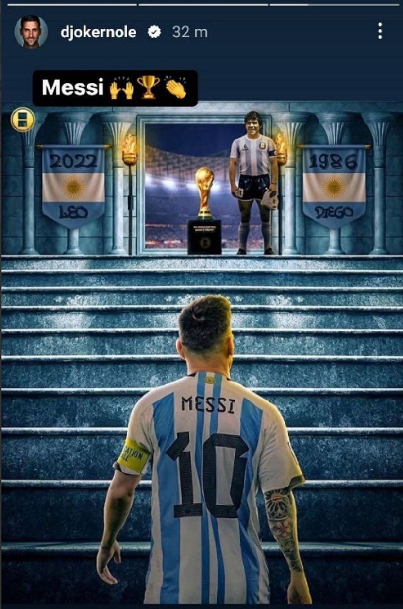 Dan nakon istorijske utakmice Đoković se oglasio na društvenim mrežama i "okačio" sliku na kojoj kapiten Argentinaca Lionel Mesi korača ka tituli prvaka sveta pored koje stoji veliki Maradona uz emotikone aplauza.