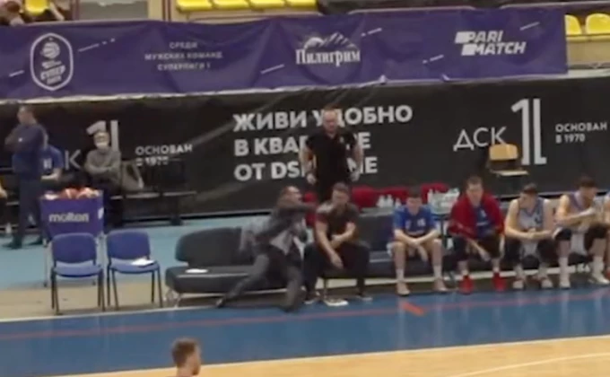 Naime, pomoćni trener domaćeg tima Oleg Ten je nakon verbalne rasprave sa prvim trenerom ekipe Artjomom Oljhovim pokušao da se pobije, ali mu nije išlo baš najbolje.