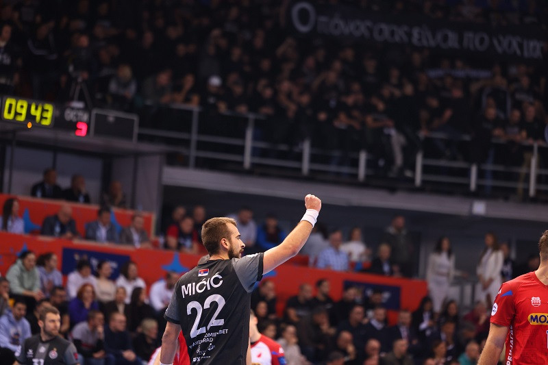 Četiri gola prednosti je Partizan AdmiralBet odneo i na poluvreme, kada je Crnoglavac uz zvuk sirene pogodio iz deveterca za 17:13 posle 30 minuta igre. Bio je to njegov već osmi gol u ovom meču.