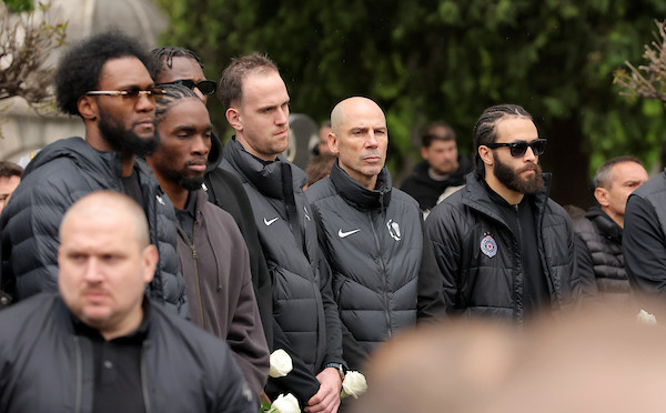 Navijači su zapevali i Partizanovu himnu za oproštaj od svog trenera, a telo je spušteno u zemlju uz pesmu Đorđa Balaševića "Stih iznad svih".