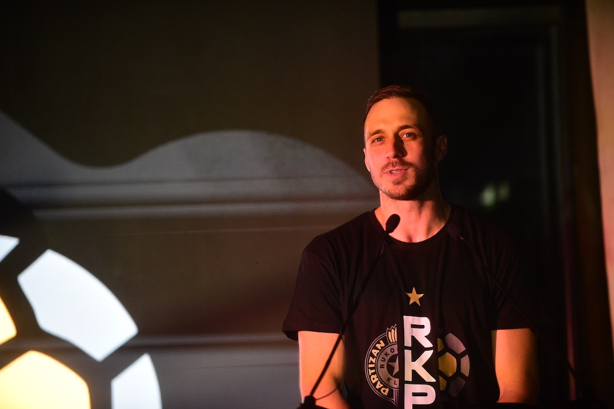 "Hvala puno celoj crno-beloj porodici što podržava ovaj novi ambiciozni projekat rukometnog kluba Partizan. Mi iz stručnog štaba, kada želimo da pošaljemo neku poruku igračima, to često radimo na slikovit način, pa ću i večeras preuzeti taj pristup. Svi smo čuli za Spartance, ratničko društvo iz antičke Grčke, koji su bili poznati po hrabrosti, disciplini, volji i istrajnosti, a bogami ih je i neprijatelj izbegavao. Njihova tajna nije bila u oružju, već u štitu. Kada bi došlo do borbe, ako neko izgubi kacigu ili grudni oklop, nije snosio posledice. Ali ako izgubi štit, gubio je sva građanska prava. Razlog za to je vrlo jednostavan. Kaciga i oklop koriste se zbog lične bezbednosti, a štit – ako se izgubi – to direktno ugrožava liniju borbe, tim i celo društvo. Ako ovo poređenje nije previše pretenciozno, hteo sam da kažem da ovakvo okupljanje, ovakav događaj za ovu našu pojačanu ekipu, zapravo predstavlja jedan zajednički štit. Jedino što sam video u ove četiri nedelje zajedničkog rada i što mogu da obećam, ono što sam potpuno siguran, jeste da niko od ovih igrača ove godine neće spustiti ni baciti taj štit".