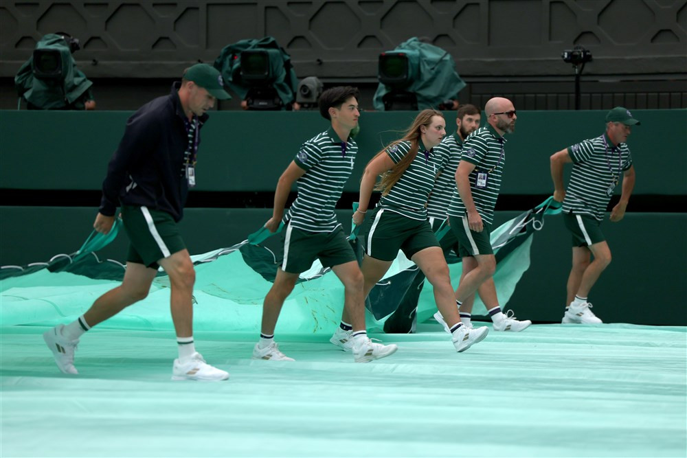 Kada se završio prvi set, u Londonu je počela da pada kiša, pa je usledila duga pauza zbog zatvaranja krova.