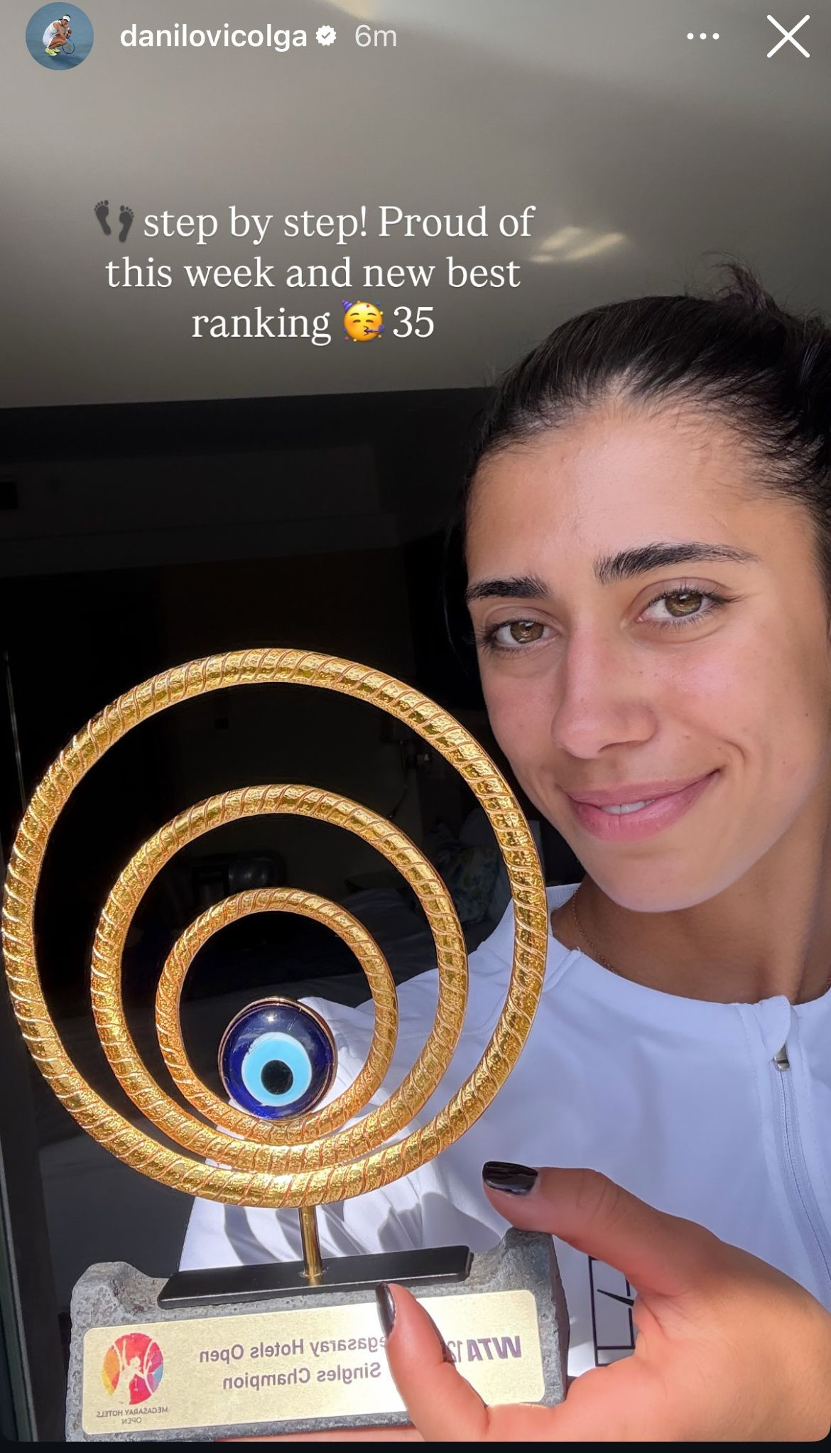 "Korak po korak! Ponosna na ovu nedelju i novi najbolji renking, 35", napisala je Olga Danilović na svom Instagramu.