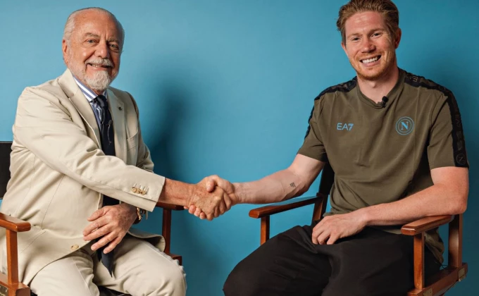 De Brujne je ovog jutra sleteo u Italiju i stigao u Napulj gde ga je sačekalo mnogo medija, ali i navijača. Zanimljivo je bilo predstavljanje na stolicama sa filmskih setova, što je očigledno dieja prvog čoveka kluba Aurelija de Laurentisa koji je producent.