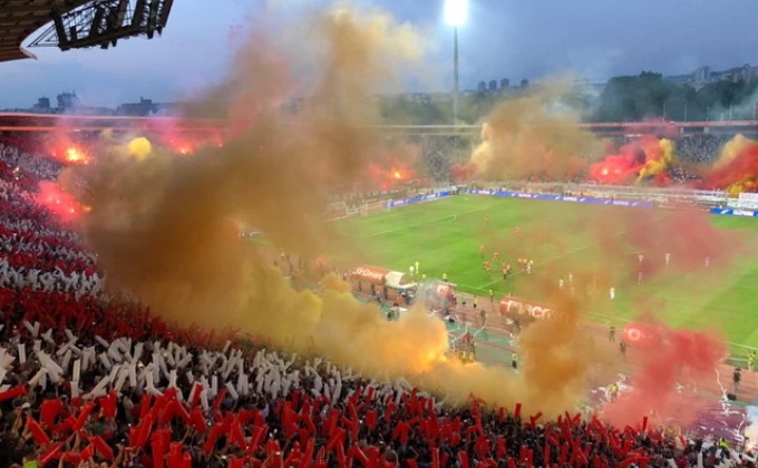 Početak utakmice između Crvene zvezde i Voždovca obeležili navcijači domaćeg tima.