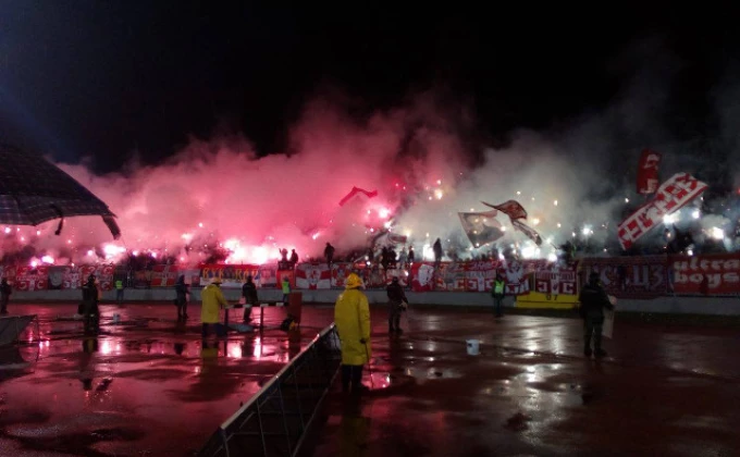 Upravo kada su navijači Crvene zvezde krenuli sa bakljadom, na drugoj strani je izbila tuča koja je trajala nekoliko minuta, završilo se dolaskom hitne pomoći.