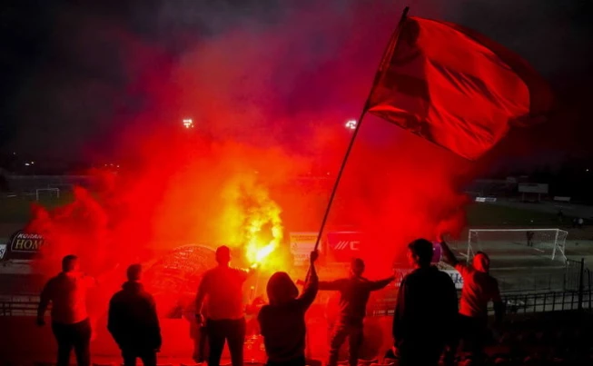 Nekoliko desetina navijača Olimpijakosa napravilo je sjajnu atmosferu tokom treninga, a nije izostala ni bakljada.