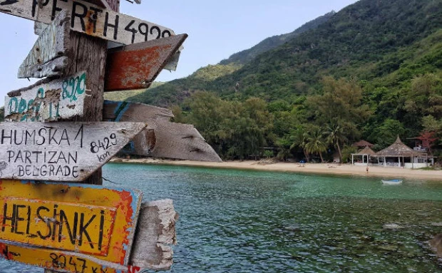 Nije otkriveno na kom mestu je uslikana tabla sa putokazima, ali je jasno da se radi o nekom udaljenom mestu koje izlazi na more.