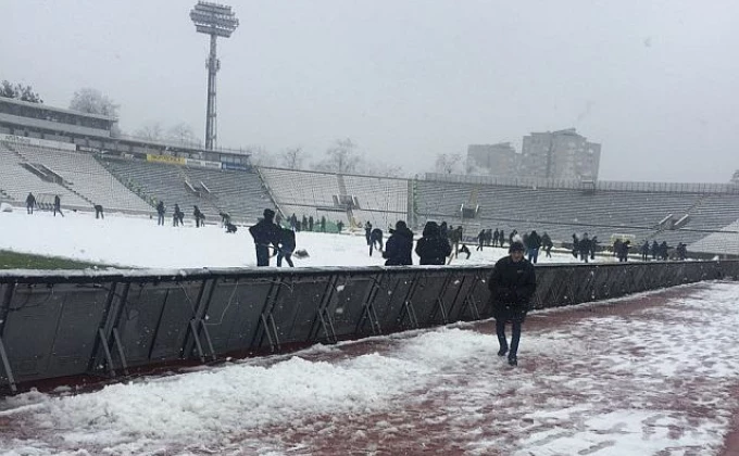 Ekipe su na terenu stadiona crno-belih, raščišćavaju sneg i čine sve da teren bude spreman za derbi meč. Zanimljivo je da su osim radnika na stadionu teren raščišćavali navijači, ali i sam vrh kluba - predsednik Miroslav Vučelić i generalni direktor Miloš Vazura. Dvojica funkcionera provela su na terenu više od sat vremena u zajedničkoj akciji.