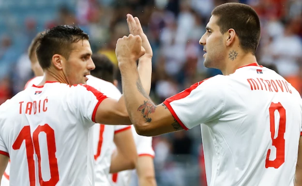 Najbolja šansa za reprezentaciju Srbije viđena je u 36. minutu, Dušan Tadić je ponovo sjajno uposlio Đuričića, ovaj tražio Mitrovića koji je u padu promašio zicer sa samo par metara.