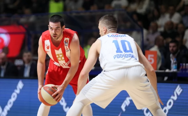 Posle prvog poluvremena četvrte utakmice finala plej-ofa ABA lige, Budućnost - Crvena zvezda 36:38.
