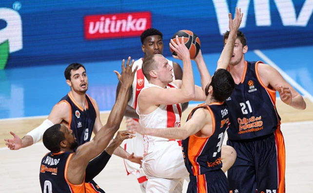 "Crveno-beli" dobro otvaraju drugu deonicu, vezali su pet poena, ali je Valensija sa tri vezane trojke napravila seriju 9-0 i preokrenula rezultat.