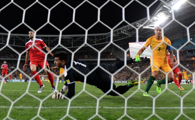 On je i ovaj put glavom nadvisio svoje čuvare i prevario sirijskog golmana za ogromnu radost Australije, koja je sada na korak od Mundijala.