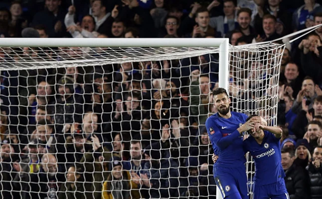Prvi napad 'plavaca' u drugom poluvremenu im je doneo vođstvo, Fabregas je poslao dubinsku loptu ka Azaru, ovaj posle akrobatskog prvog kontakta produžio za Olivijea Žirua, koji sa dva lažnjaka lomi celu odbranu Sotona i pogađa iz peterca za 1:0.