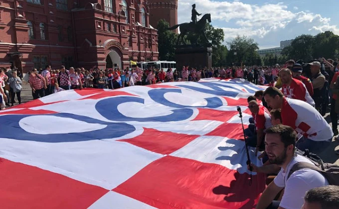 Očekuje se da će hrvatskih navijača biti oko 10 hiljada, a ovu ogromnu zastavu sašili su njihovi navijači koji rade u Moskvi.