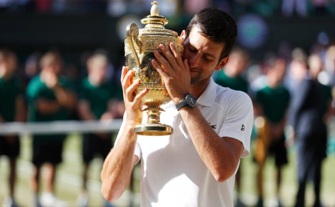 Novak Đoković je odmah nakon ceremonije dodele trofeja na Vimbldonu krenuo da se pozdravi sa ljudima koji su ga bodrili iz lože.